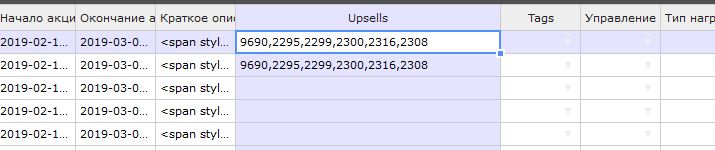 Now only the first Upsell is highlighted, and those that continue after the comma do not show ...