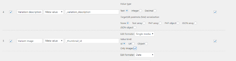 I need to map product long description and short description contents but I could not find their formats in Source type value area?