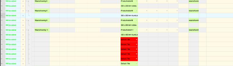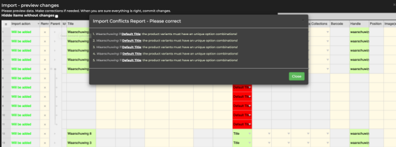 "Waarschuwing 1 Default Title: the product variants must have an unique option combinations!"