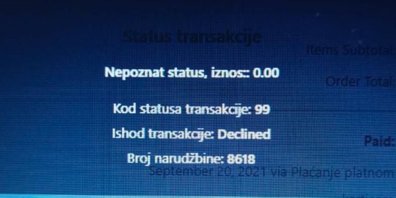 Kroz Intesa terminal smo uspeli da skinemo i voidiramo porudzbine.