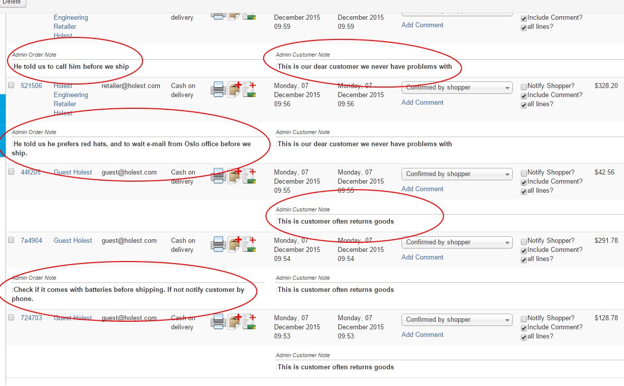 This plugin enables VirtueMart back-end users to add notes for customers and orders.