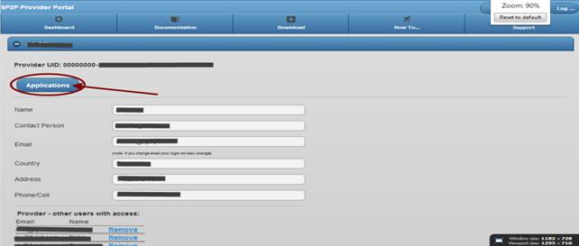 Next thing you need to do is to register your application. Click on "Applications" button below provider contact data.